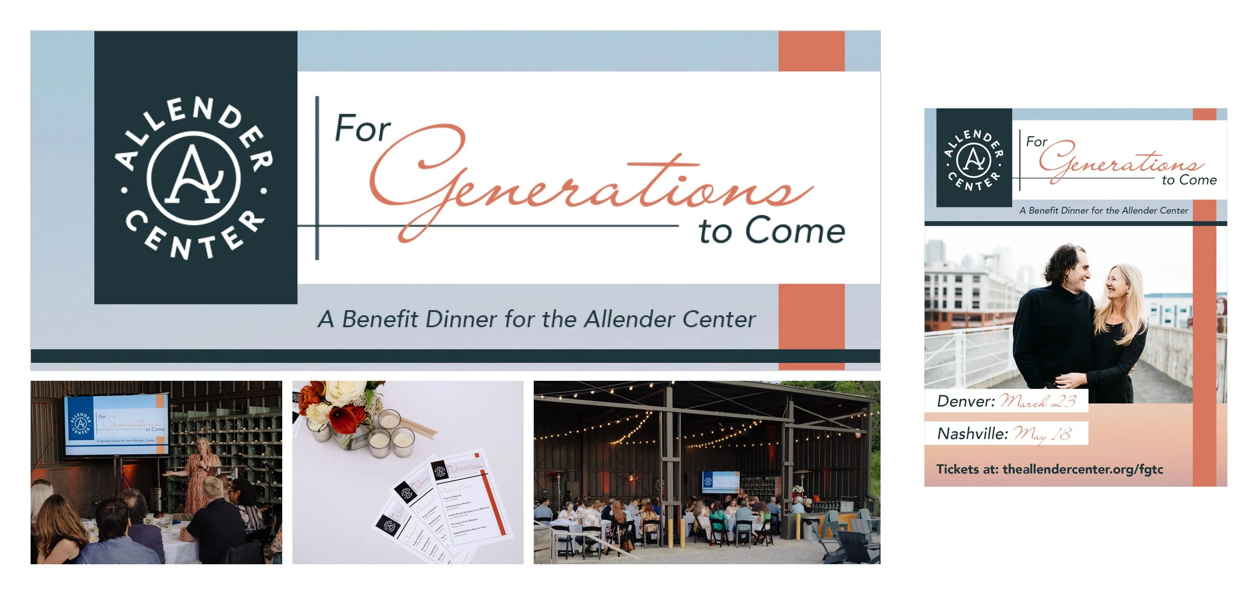 event design: email and campaign headers, social media posts, slides, and programs for in-person fundraising event