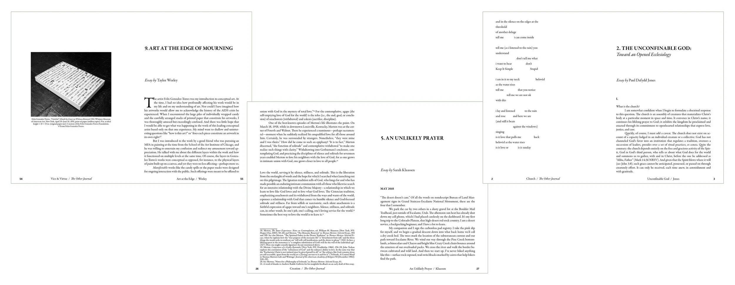 The Other Journal is a thematic print and digital journal housed within The Seattle School of Theology & Psychology that aims to “tell it slant.” It provides readers with provocative, challenging, nuanced Christian writing on social issues, politics, cultural trends, pop phenomena, and theological ideas through a variety of genre.